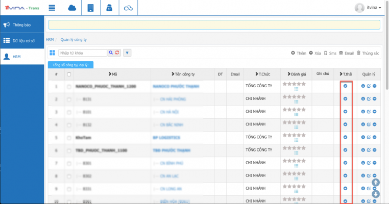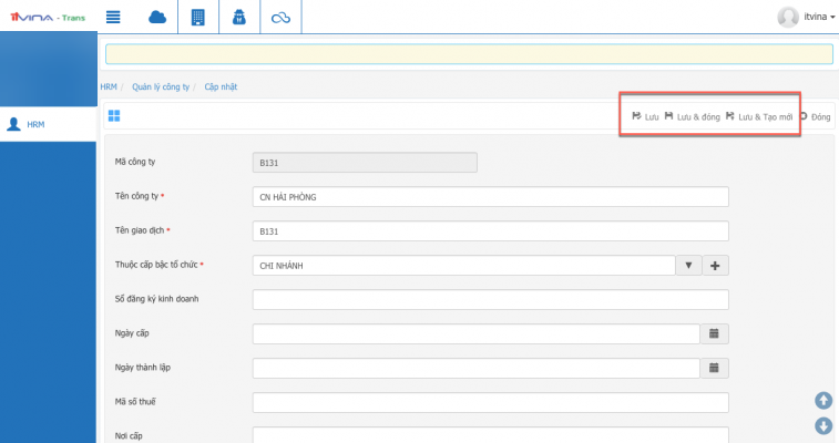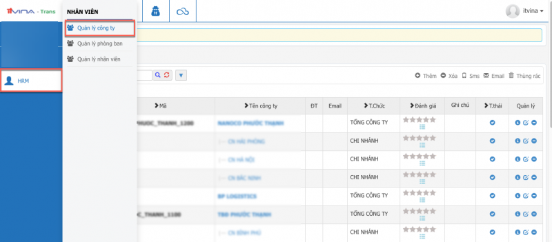 Tại phân hệ HRM -> Vào “HRM” -> “Quản lý công ty”:
