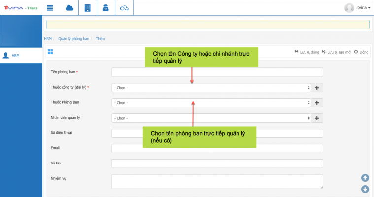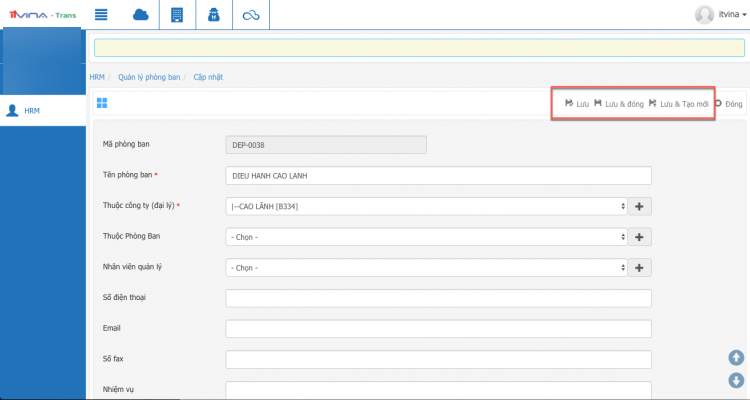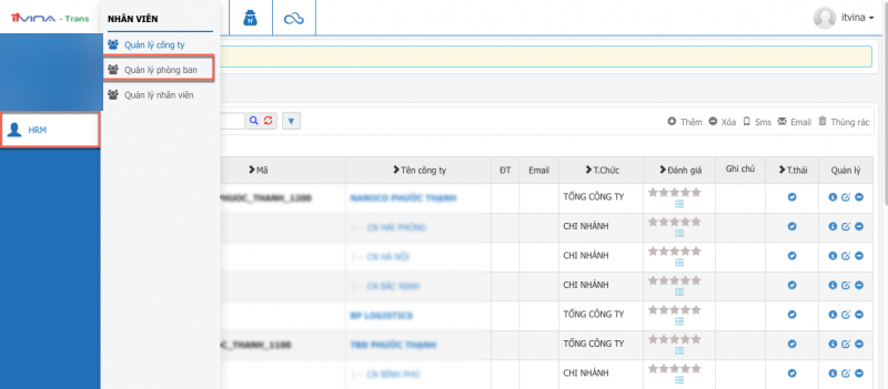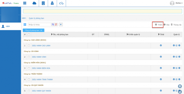 Tại phân hệ HRM -> Vào “HRM” -> “Quản lý phòng ban”: