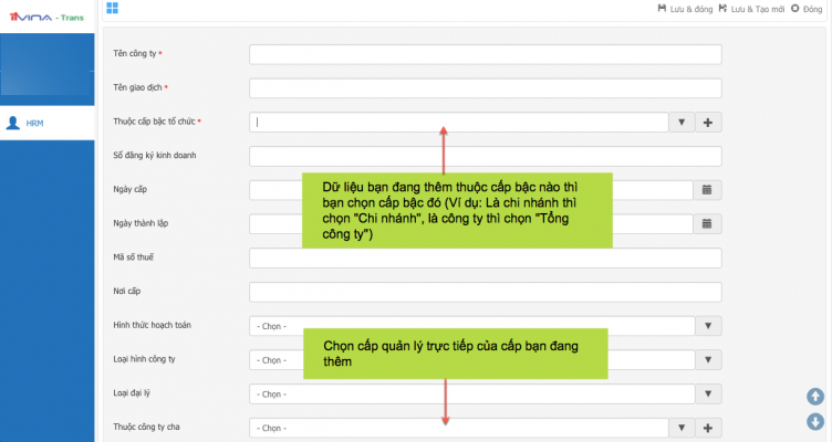 Tại càI ĐẶT -> Thêm loại tổ chức mới hiện đang có “Đại lý ” ”Văn Phòng’ “Trụ sở chính”
