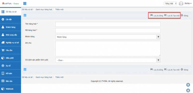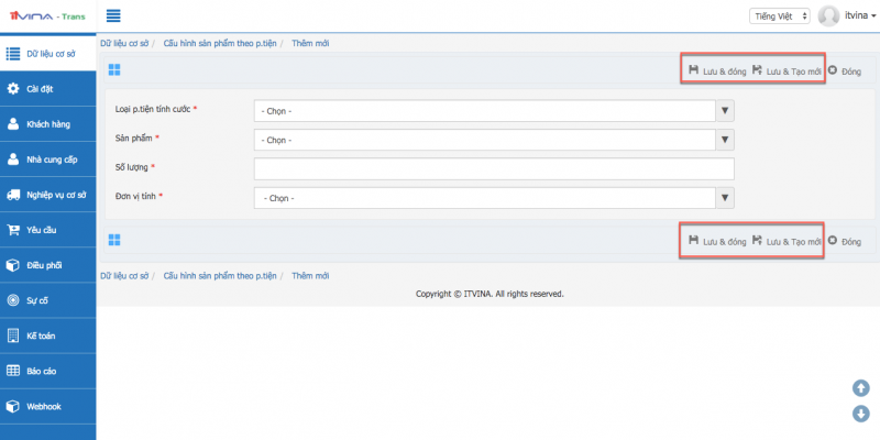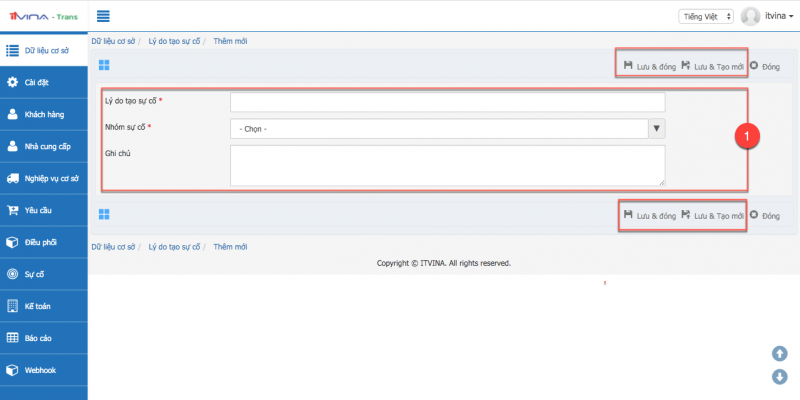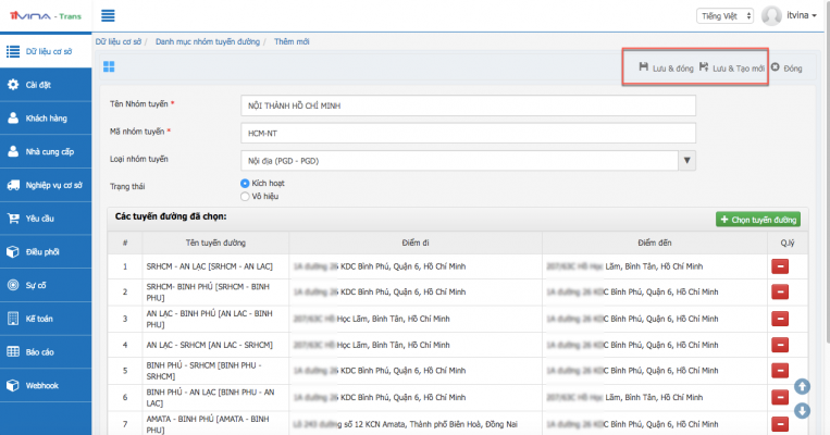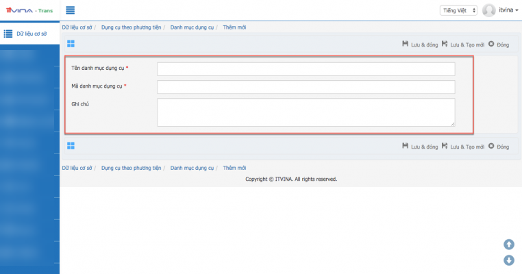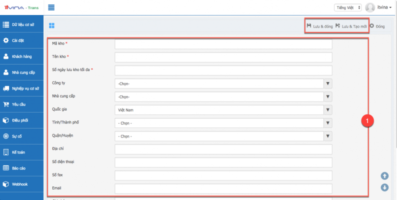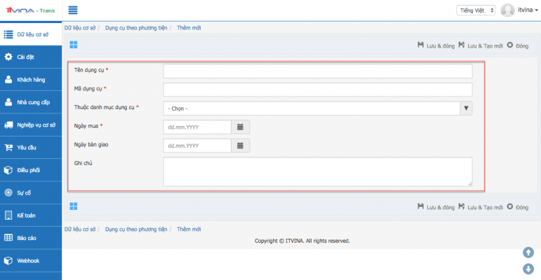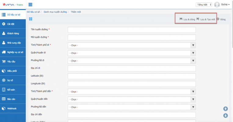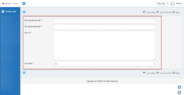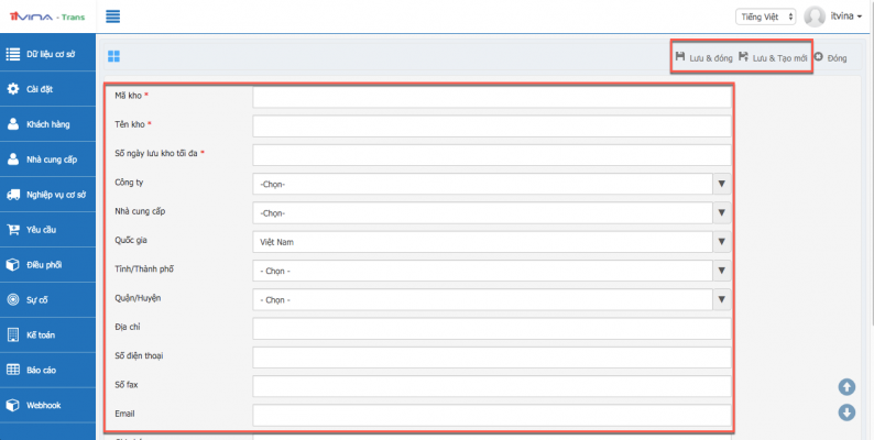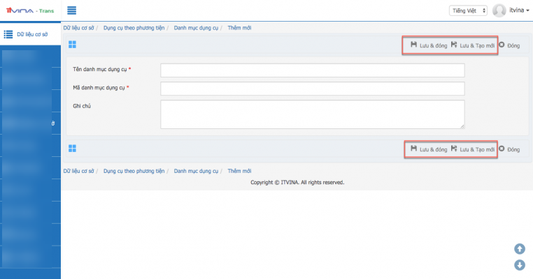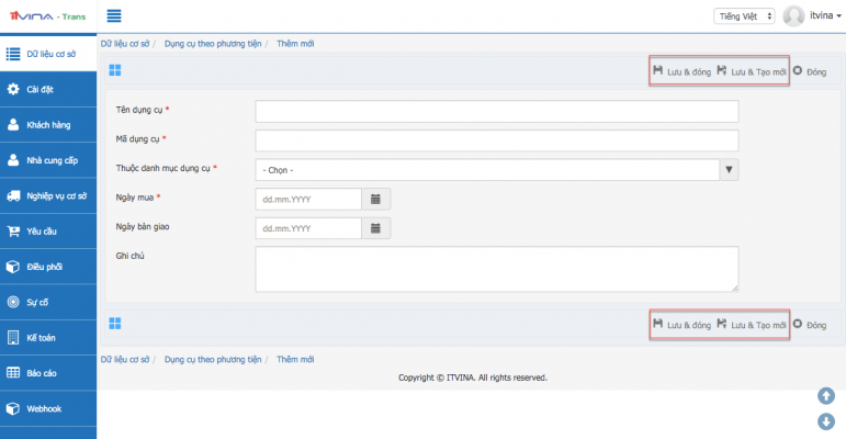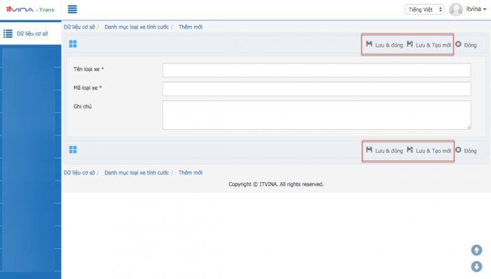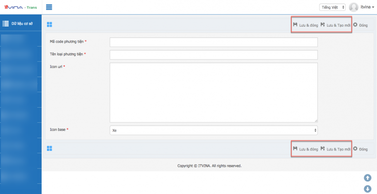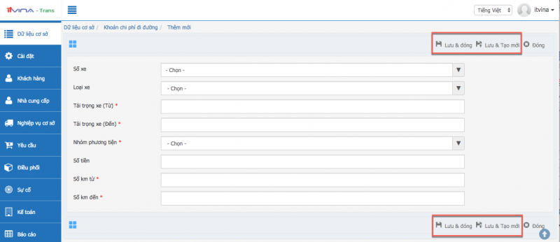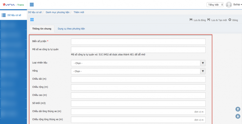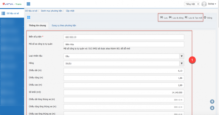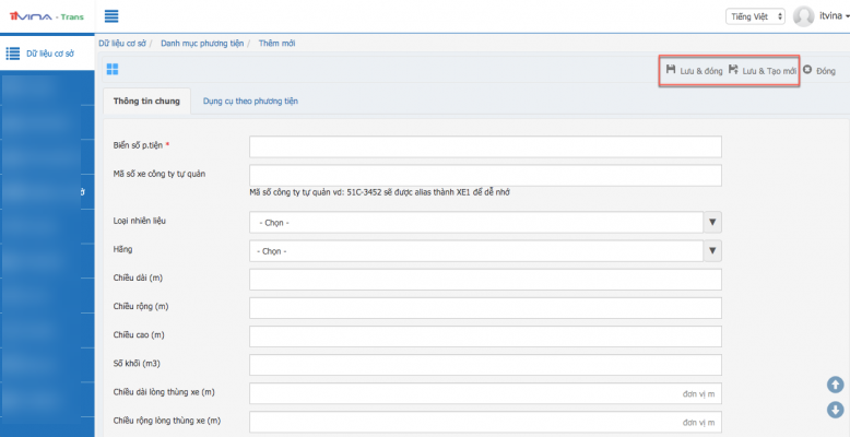 Sau khi hoàn tất bước nhập thông tin phương tiện, nhấn “Lưu & đóng” hoặc “Lưu & tạo mới”: