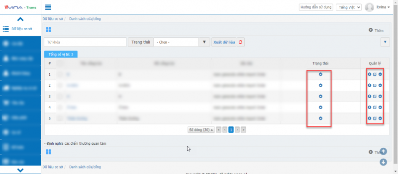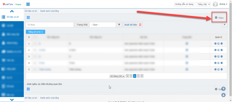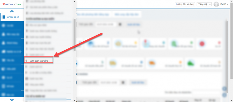 Tại phân hệ Transport, vào “Dữ liệu cơ sở” -> ”Danh sách cửa/cổng”: