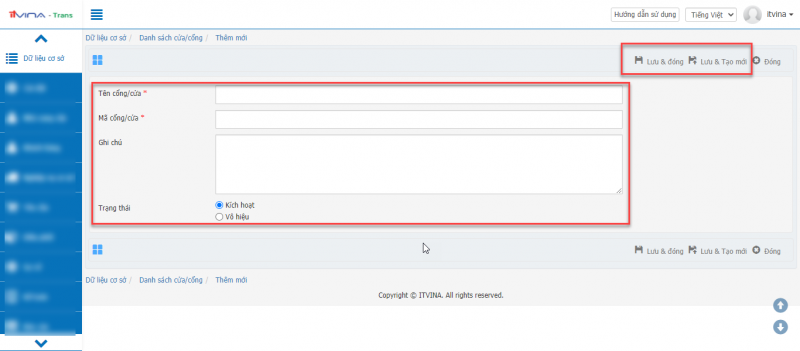 Nhập thông tin cửa/cổng -> Nhấn “Lưu & đóng” hoặc “Lưu & tạo mới”:
