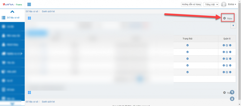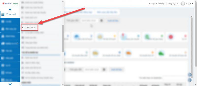 Tại phân hệ Transport, vào “Dữ liệu cơ sở” -> ”Danh sách lot”: