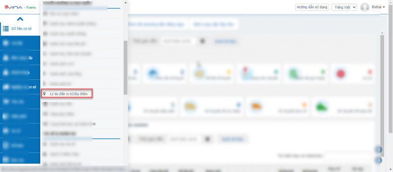 Tại phân hệ Transport, vào “Dữ liệu cơ sở” -> ”Lý do đến vị trí/địa điểm”: