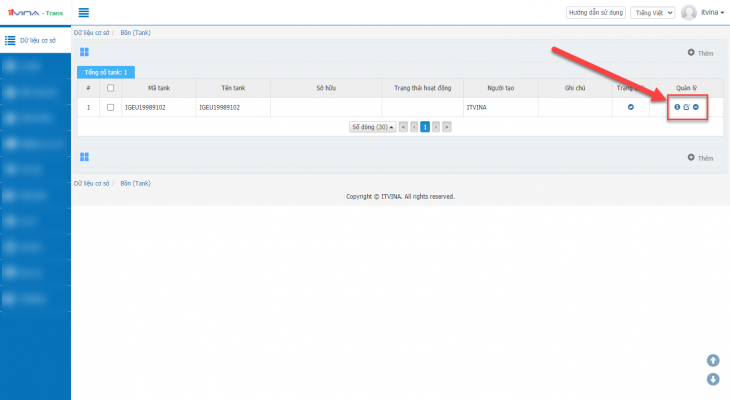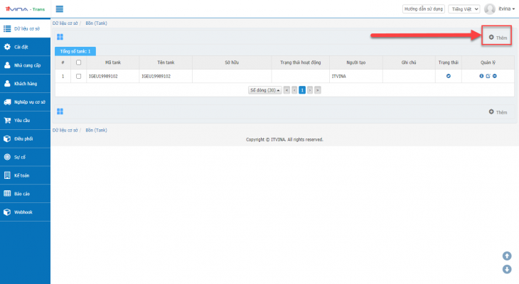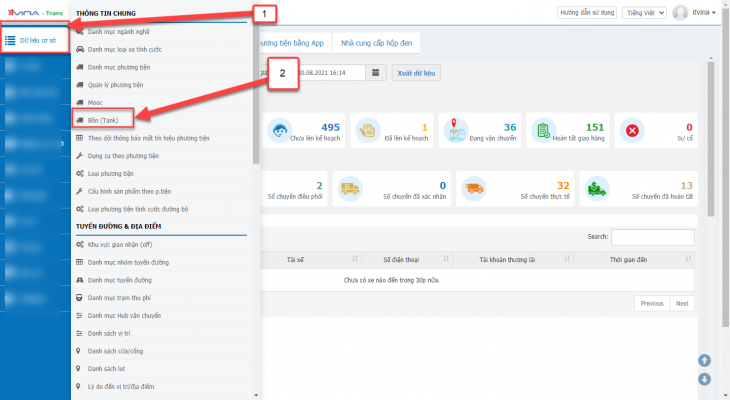 Tại phân hệ Transport, vào “Dữ liệu cơ sở” -> “Bồn (Tank)“:
