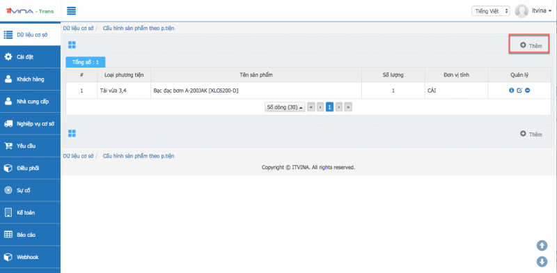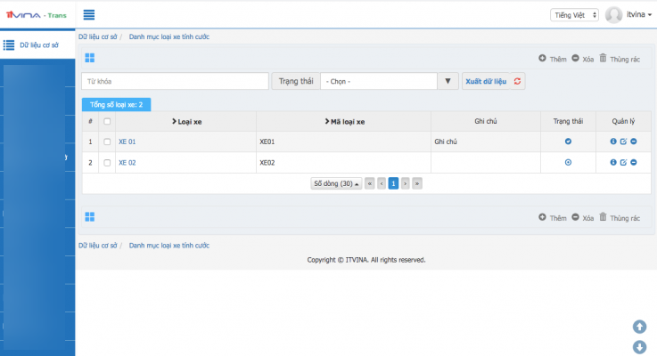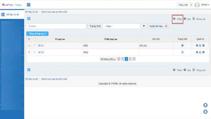 2.1. Xem danh sách loại phương tiện đã thêm: