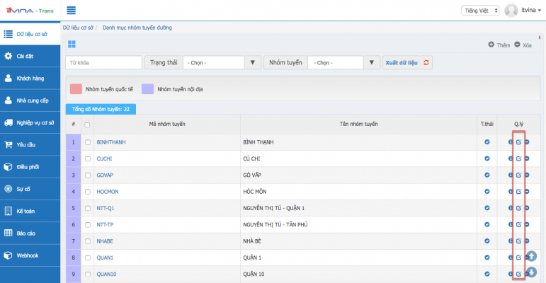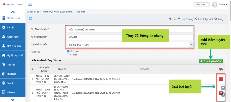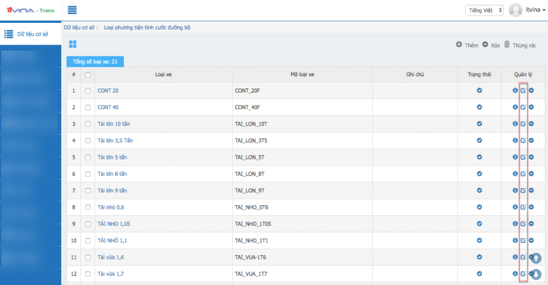 1.4. Sửa thông tin loại xe tính cước đã thêm: