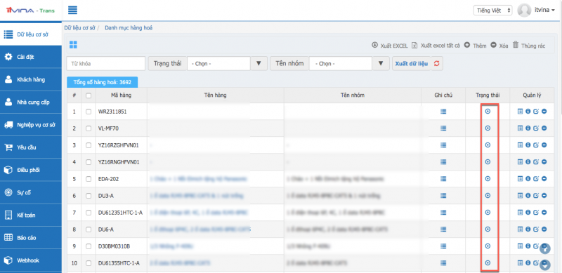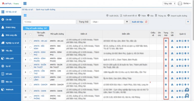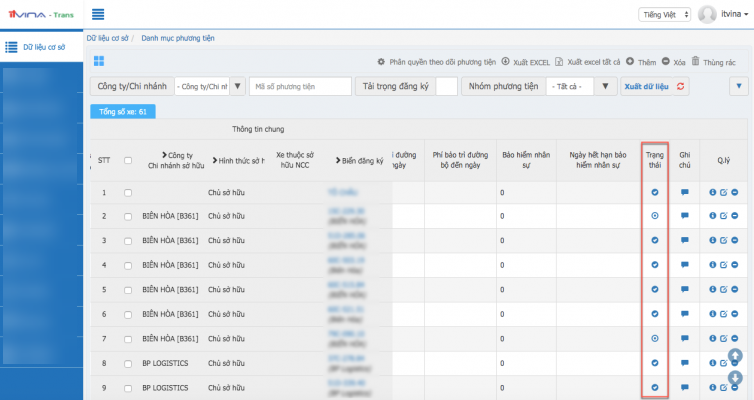 Mục đích: Trong trường hợp phương tiện đó không còn dùng đến nhưng bạn không thể xoá được do phương tiện đó đã từng được sử dụng để điều phối chở hàng, bạn sử dụng chức năng vô hiệu phương tiện để không còn nhìn thấy phương tiện này trong màn hình điều phối và báo cáo liên quan.