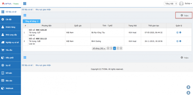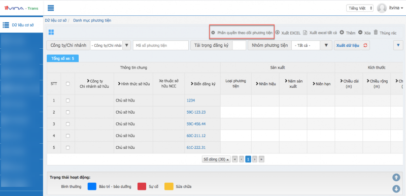 Mục đích: Dùng để phân quyền cho người dùng nhìn thấy phương tiện này trong các màn hình điều phối và xem báo cáo.