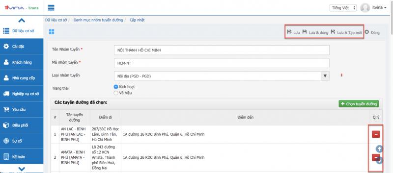 3.4. Sửa loại phương tiện tính cước đường bộ đã thêm: