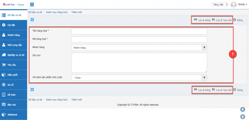 Sửa thông tin (vùng 1) -> Nhấn “Lưu & đóng” hoặc “Lưu & tạo mới”: