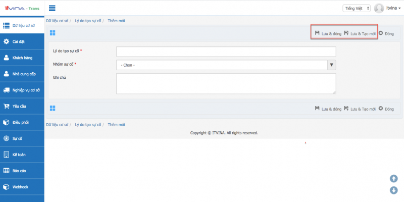 Mục đích: Trong trường hợp lý do sự cố đó không còn dùng đến nhưng bạn không thể xoá được, bạn sử dụng chức năng vô hiệu lý do sự cố.
