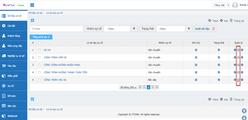 Để sửa lý do sự cố đã thêm trước đó, tại màn hình xem danh sách lý do sự cố đã thêm, nhấn vào chức năng sửa: