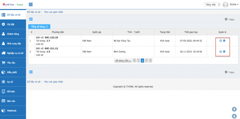 - Chỉ có thể xoá được phương tiện với điều kiện phương tiện đó chưa được sử dụng để điều phối xếp hàng.