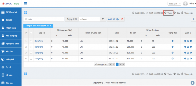 4. Danh mục phương tiện vận chuyển (xe tải, sà làn, …)