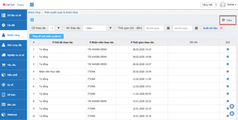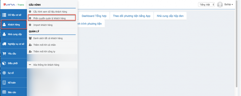 Tại phân hệ Transport, vào “Khách hàng” -> “Phân quyền quản lý khách hàng”: