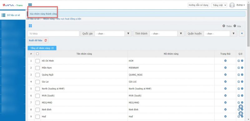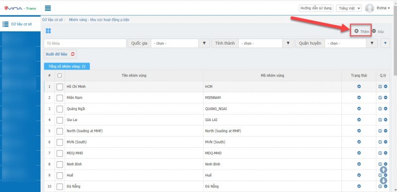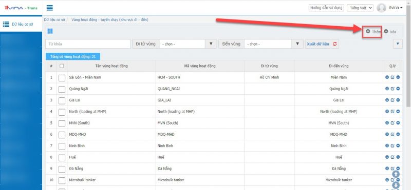 - Nhấn nút Thêm để thêm Nhóm vùng – khu vực hoạt động p.tiện