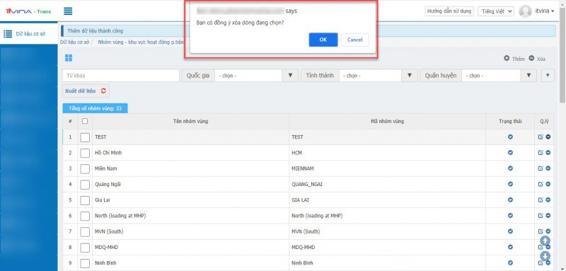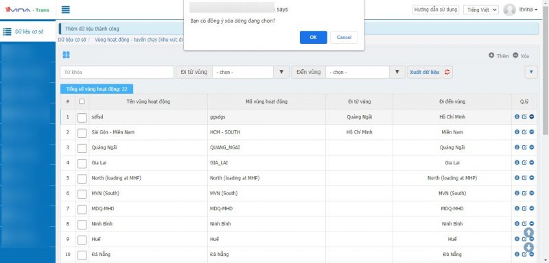 2.2.3 Xóa nhóm vùng hoạt động tuyến chạy