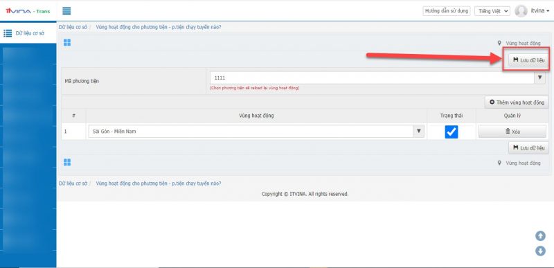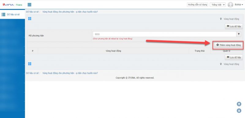 - Sau khi chọn phương tiện cần thêm vùng hoạt động, nhấn thêm vùng hoạt động. (Có thể thêm được nhiều vùng hoạt động đã cài ở mục 2.2)